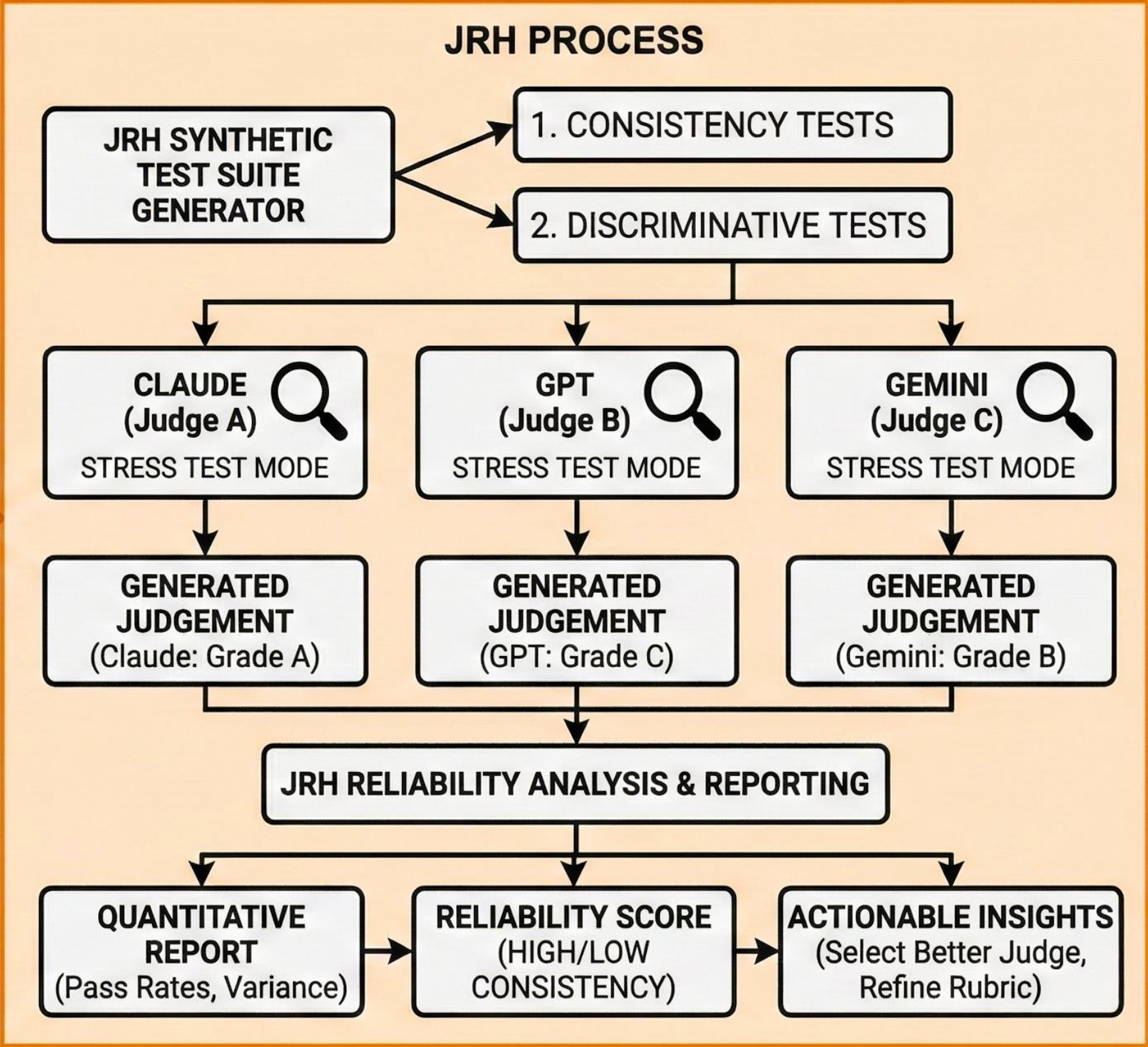 The Judge Reliability Harness (JRH) orchestrates end-to-end evaluations of automated judges. It standardizes how datasets are prepared, perturbations are generated, and model outputs are rescored so teams can compare judge reliability across tasks. The harness coordinates data ingestion, perturbation pipelines, automated grading, and reporting into reproducible runs.